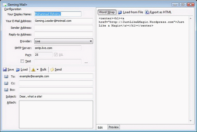 برنامج Geming Mail+ عبارة عن برنامج يقوم بإرسال رسائل البريد الإلكتروني من خلال أكثر من مزود لخدمة البريد الإلكتروني E-Mail Service Provider والذي يدعم خدمة SMTP.